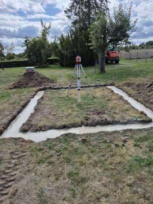 Das Fundament ist fertig. Um Kosten zu sparen werden verschiedene Arbeiten in Eigenleistung gemacht.